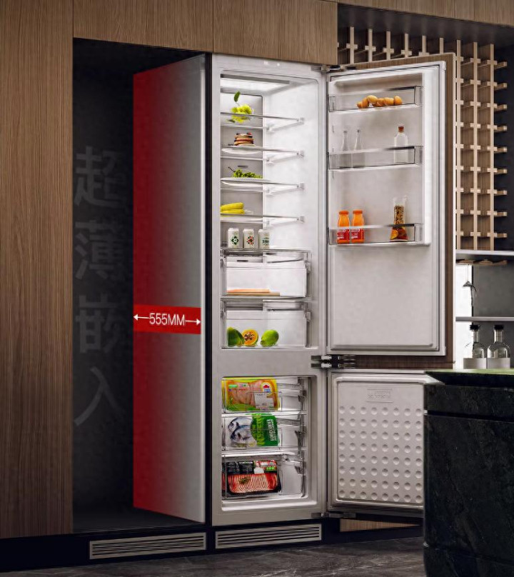 无缝贴合,告别卫生死角:通过精准尺寸适配与专业嵌装工艺,冰箱与标准橱柜严丝合缝,彻底消除传统家电与柜体间的缝隙积灰问题,清洁无需挪动,一抹即净。